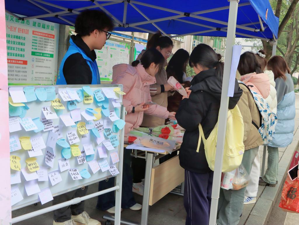 本网讯(记者 饶嘉敏 张悦)为进一步丰富校园精神文化生活,展现女生积极、乐观、向上的精神风貌,提升学生在校幸福感,怀化学院团委于3月7日在东、西区开展“3.7女生节——予ta同行”特色主题活动。