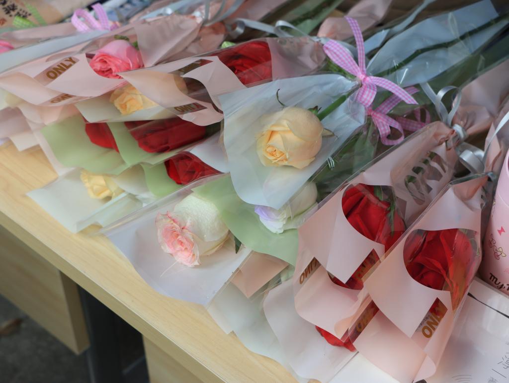 校团委为同学们准备的鲜花。(李颂林 摄)