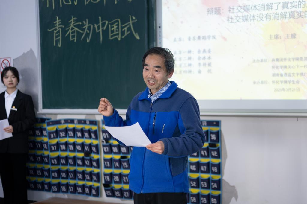 辩论赛主席致开场词。(周召慧 摄)