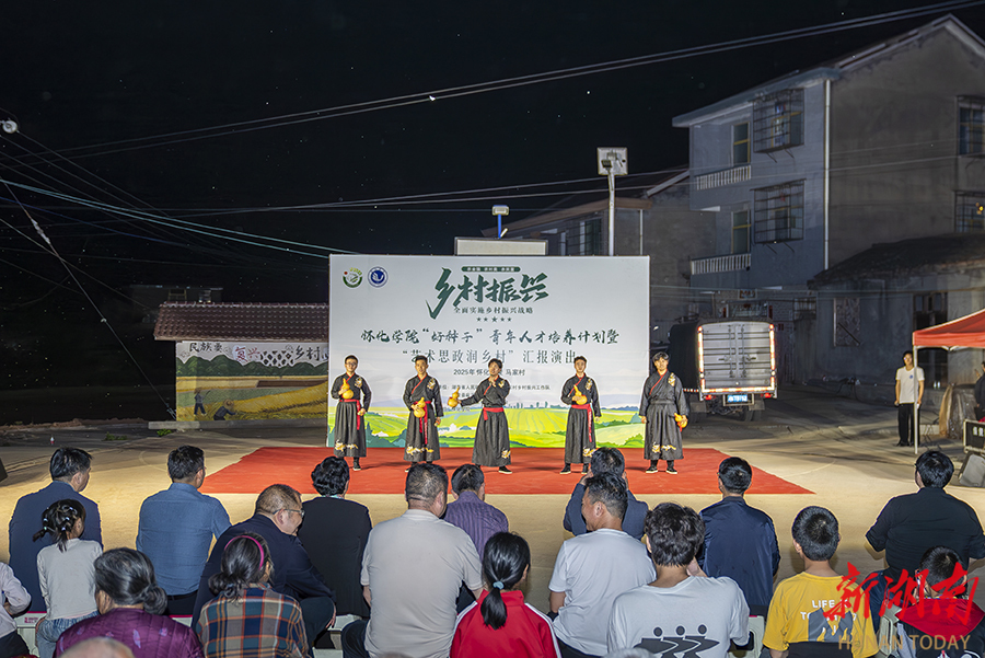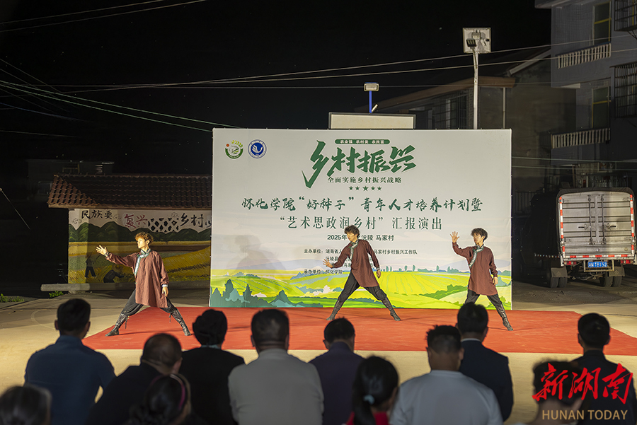 4月10日晚,怀化学院“好种子”青年人才培养计划暨“艺术思政润乡村”汇报演出走进沅陵县麻溪铺镇马家村,吸引众多村民前来观看,乐享“思政文化大餐”。