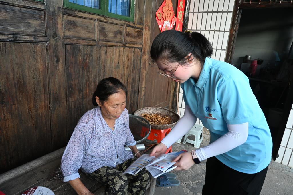 怀化学院“好种子”志愿服务队成员向村民宣传防诈知识。(张悦 摄)