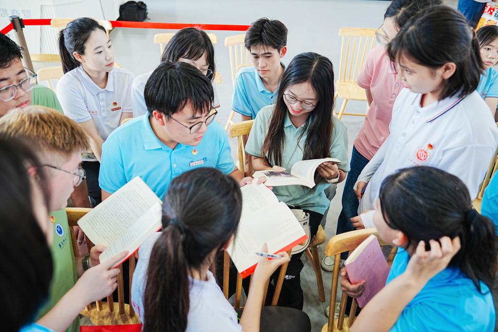 本网讯(记者何 云 谭芳晴 唐 凯)为深入学习贯彻习近平总书记关于青年工作的重要思想,进一步激发青年学生的爱国情怀和责任担当。7月11日下午,“习近平总书记与大学生在一起”学习分享活动暨教育部“师范教育协同提质计划”湖南师范大学组团大学生暑期社会实践活动在安江易烊千玺公益图书馆举行,来自湖南师范大学、福建师范大学、闽南师范大学、宁夏师范大学、湖南第一师范学院、长沙师范学院、怀化学院的高校青年围绕《习近平与大学生朋友们》的读书心得展开了深入的讨论与分享,谈感受、聊故事、讲体会,相互启发,相互影响。